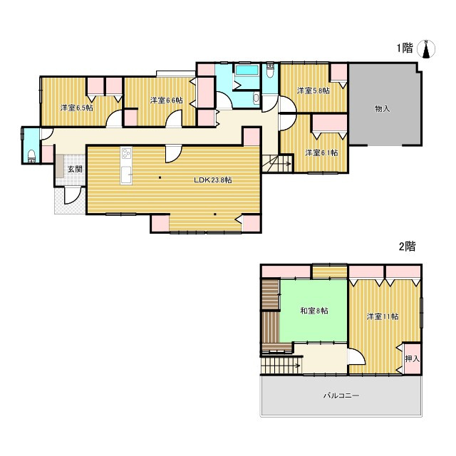 | 建物面積/坪数 | 202.77㎡ / 61.33坪 | 土地面積/坪数 | 373.46㎡ / 112.97坪 |